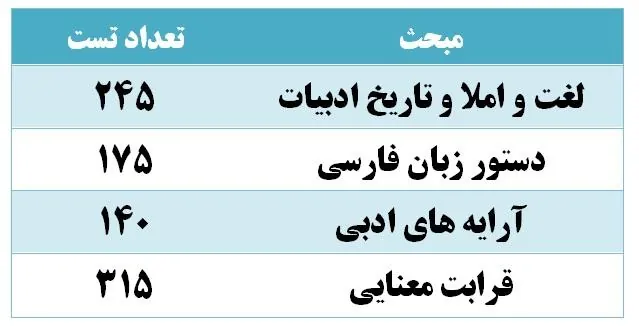 بنابراین کسب مهات سرعت و دقت کافی در بخش های (لغت و املا ، تاریخ ادبیات ، دستورزبان فارسی و قرابت معنایی) با حل تست های فراون و مفهومی میتواند حاصل شود.